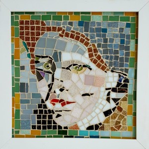 DESCRIÇÃO: Quadro. 2011. Releitura da obra de Van Gogh “Camponesa” escondida por trás da obra “Patch Of Grass” – 1887. Mosaico Contemporâneo em pastilha de vidro. Moldura em madeira.